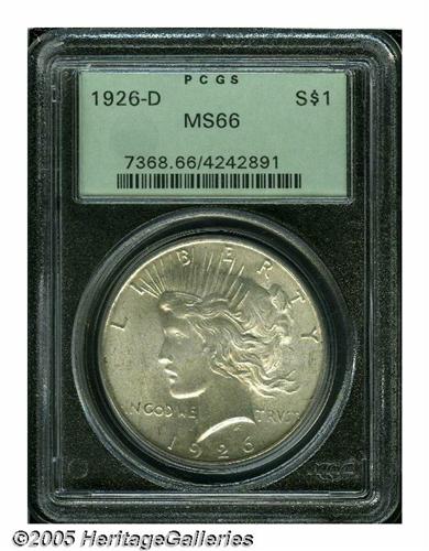 <B>1926-D<S$1> MS66 PCGS.</B></I> This premium Gem is sharply struck, fully lustrous, and minimally abraded. Population: 146 in 66, 8 finer (5/05).