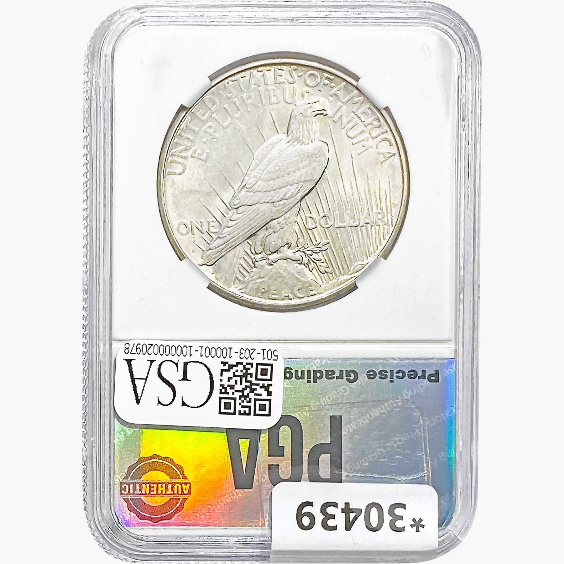 COINS AND CURRENCY LISTED IN GSA’S CATALOG AS GRADED AND ENCAPSULATED BY PCGS, NGC, ANACS, ICG, PCGS CURRENCY, PMG, PCGS BANKNOTE GRADING, CMC OR ANY OTHER THIRD-PARTY GRADING SERVICE ARE LIKEWISE SOLD “AS-IS” EXCEPT AS EXPRESSLY SET FORTH HEREIN. ALL THIRD-PARTY GRADING SERVICE GUARANTEES, INCLUDING AUTHENTICITY, ARE THE SOLE RESPONSIBILITY OF THE THIRD-PARTY GRADING SERVICE AND NOT WARRANTIES OR GUARANTEES OF GSA. BIDDERS SHOULD CONTACT THESE THIRD-PARTY GRADING SERVICES DIRECTLY WITH RESPECT TO ANY CLAIMS OR QUESTIONS THEY MAY HAVE CONCERNING THEIR GUARANTEES AND WARRANTIES. BIDDERS ACKNOWLEDGE AND AGREE THAT AUCTIONEER IS NOT BOUND BY OR LIABLE FOR ANY OPINION OR CERTIFICATION BY ANY THIRD-PARTY GRADING SERVICE. REMOVAL OF A PRODUCT FROM ITS PROTECTIVE CASING OR HOLDER OR ALTERATION OF ANY COIN HOLDER WAIVES ALL RIGHTS CONCERNING THE PRODUCT CONTAINED THEREIN.