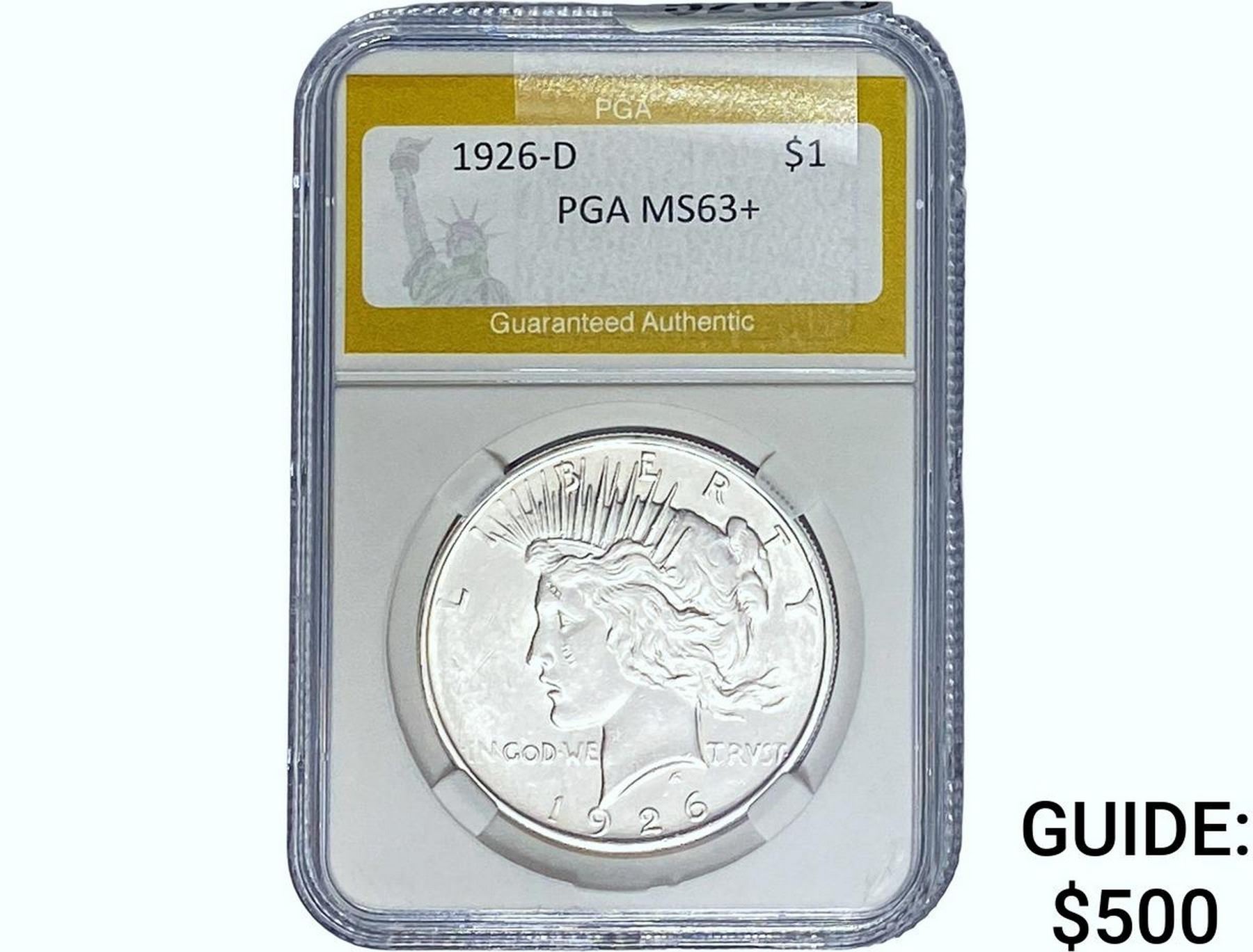 COINS AND CURRENCY LISTED IN GSA’S CATALOG AS GRADED AND ENCAPSULATED BY PCGS, NGC, ANACS, ICG, PCGS CURRENCY, PMG, PCGS BANKNOTE GRADING, CMC OR ANY OTHER THIRD-PARTY GRADING SERVICE ARE LIKEWISE SOLD “AS-IS” EXCEPT AS EXPRESSLY SET FORTH HEREIN. ALL THIRD-PARTY GRADING SERVICE GUARANTEES, INCLUDING AUTHENTICITY, ARE THE SOLE RESPONSIBILITY OF THE THIRD-PARTY GRADING SERVICE AND NOT WARRANTIES OR GUARANTEES OF GSA. BIDDERS SHOULD CONTACT THESE THIRD-PARTY GRADING SERVICES DIRECTLY WITH RESPECT TO ANY CLAIMS OR QUESTIONS THEY MAY HAVE CONCERNING THEIR GUARANTEES AND WARRANTIES. BIDDERS ACKNOWLEDGE AND AGREE THAT AUCTIONEER IS NOT BOUND BY OR LIABLE FOR ANY OPINION OR CERTIFICATION BY ANY THIRD-PARTY GRADING SERVICE. REMOVAL OF A PRODUCT FROM ITS PROTECTIVE CASING OR HOLDER OR ALTERATION OF ANY COIN HOLDER WAIVES ALL RIGHTS CONCERNING THE PRODUCT CONTAINED THEREIN.