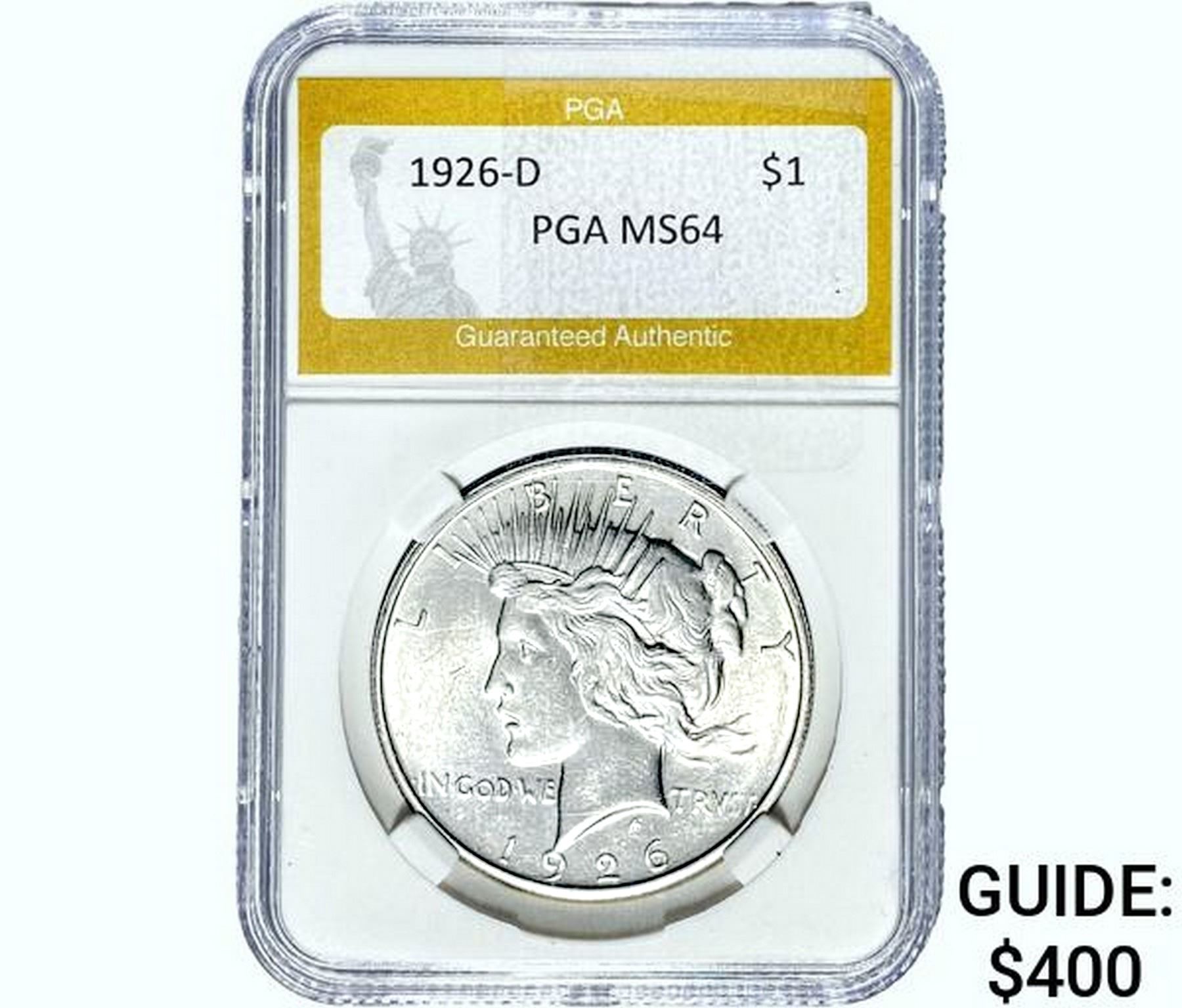 COINS AND CURRENCY LISTED IN GSA’S CATALOG AS GRADED AND ENCAPSULATED BY PCGS, NGC, ANACS, ICG, PCGS CURRENCY, PMG, PCGS BANKNOTE GRADING, CMC OR ANY OTHER THIRD-PARTY GRADING SERVICE ARE LIKEWISE SOLD “AS-IS” EXCEPT AS EXPRESSLY SET FORTH HEREIN. ALL THIRD-PARTY GRADING SERVICE GUARANTEES, INCLUDING AUTHENTICITY, ARE THE SOLE RESPONSIBILITY OF THE THIRD-PARTY GRADING SERVICE AND NOT WARRANTIES OR GUARANTEES OF GSA. BIDDERS SHOULD CONTACT THESE THIRD-PARTY GRADING SERVICES DIRECTLY WITH RESPECT TO ANY CLAIMS OR QUESTIONS THEY MAY HAVE CONCERNING THEIR GUARANTEES AND WARRANTIES. BIDDERS ACKNOWLEDGE AND AGREE THAT AUCTIONEER IS NOT BOUND BY OR LIABLE FOR ANY OPINION OR CERTIFICATION BY ANY THIRD-PARTY GRADING SERVICE. REMOVAL OF A PRODUCT FROM ITS PROTECTIVE CASING OR HOLDER OR ALTERATION OF ANY COIN HOLDER WAIVES ALL RIGHTS CONCERNING THE PRODUCT CONTAINED THEREIN.