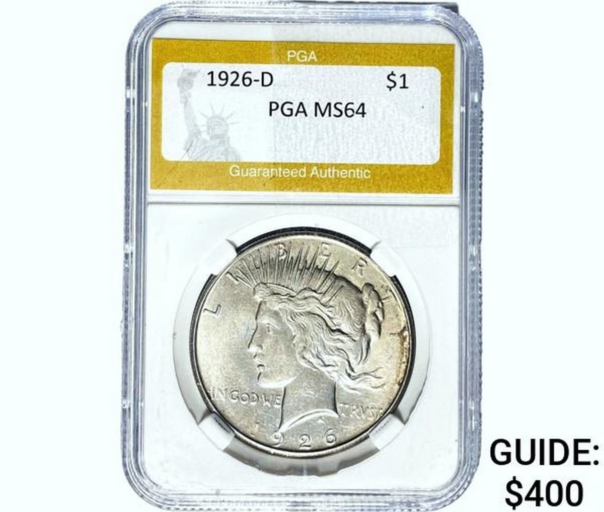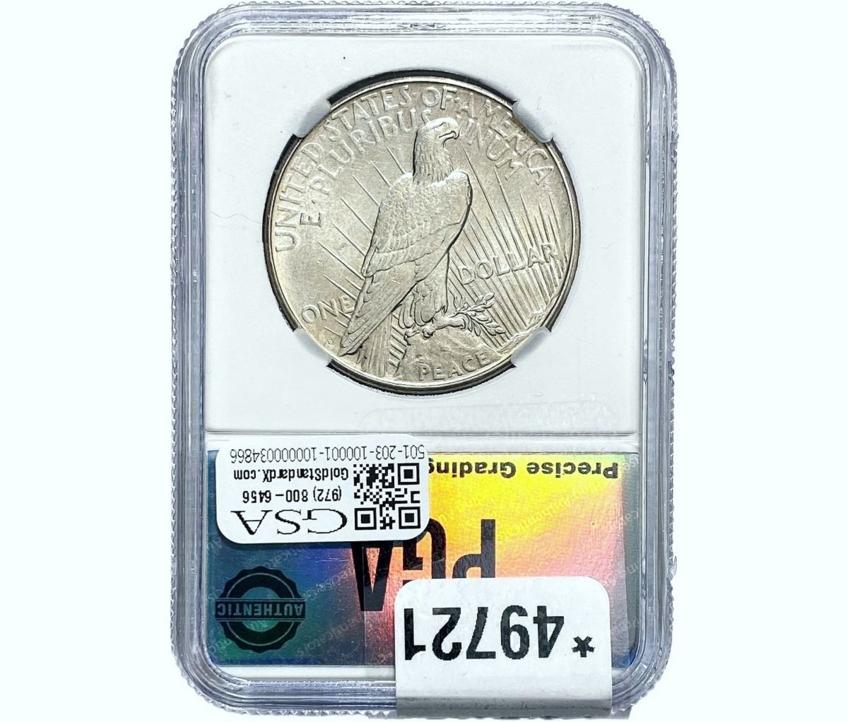 COINS AND CURRENCY LISTED IN GSA’S CATALOG AS GRADED AND ENCAPSULATED BY PCGS, NGC, ANACS, ICG, PCGS CURRENCY, PMG, PCGS BANKNOTE GRADING, CMC OR ANY OTHER THIRD-PARTY GRADING SERVICE ARE LIKEWISE SOLD “AS-IS” EXCEPT AS EXPRESSLY SET FORTH HEREIN. ALL THIRD-PARTY GRADING SERVICE GUARANTEES, INCLUDING AUTHENTICITY, ARE THE SOLE RESPONSIBILITY OF THE THIRD-PARTY GRADING SERVICE AND NOT WARRANTIES OR GUARANTEES OF GSA. BIDDERS SHOULD CONTACT THESE THIRD-PARTY GRADING SERVICES DIRECTLY WITH RESPECT TO ANY CLAIMS OR QUESTIONS THEY MAY HAVE CONCERNING THEIR GUARANTEES AND WARRANTIES. BIDDERS ACKNOWLEDGE AND AGREE THAT AUCTIONEER IS NOT BOUND BY OR LIABLE FOR ANY OPINION OR CERTIFICATION BY ANY THIRD-PARTY GRADING SERVICE. REMOVAL OF A PRODUCT FROM ITS PROTECTIVE CASING OR HOLDER OR ALTERATION OF ANY COIN HOLDER WAIVES ALL RIGHTS CONCERNING THE PRODUCT CONTAINED THEREIN.