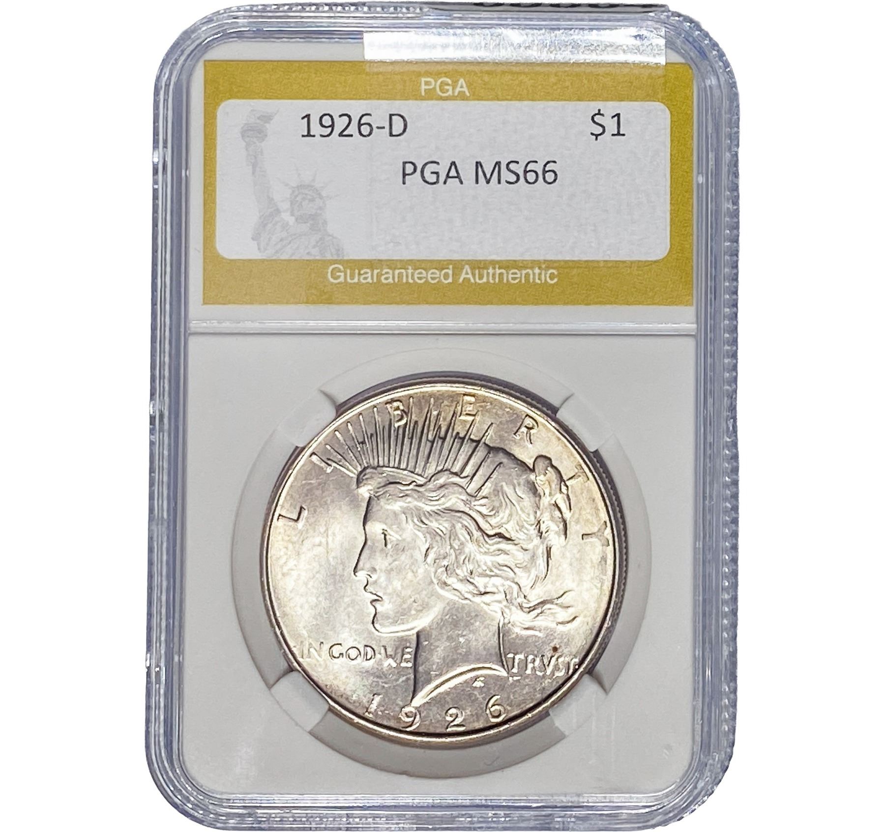 COINS AND CURRENCY LISTED IN GSA’S CATALOG AS GRADED AND ENCAPSULATED BY PCGS, NGC, ANACS, ICG, PCGS CURRENCY, PMG, PCGS BANKNOTE GRADING, CMC OR ANY OTHER THIRD-PARTY GRADING SERVICE ARE LIKEWISE SOLD “AS-IS” EXCEPT AS EXPRESSLY SET FORTH HEREIN. ALL THIRD-PARTY GRADING SERVICE GUARANTEES, INCLUDING AUTHENTICITY, ARE THE SOLE RESPONSIBILITY OF THE THIRD-PARTY GRADING SERVICE AND NOT WARRANTIES OR GUARANTEES OF GSA. BIDDERS SHOULD CONTACT THESE THIRD-PARTY GRADING SERVICES DIRECTLY WITH RESPECT TO ANY CLAIMS OR QUESTIONS THEY MAY HAVE CONCERNING THEIR GUARANTEES AND WARRANTIES. BIDDERS ACKNOWLEDGE AND AGREE THAT AUCTIONEER IS NOT BOUND BY OR LIABLE FOR ANY OPINION OR CERTIFICATION BY ANY THIRD-PARTY GRADING SERVICE. REMOVAL OF A PRODUCT FROM ITS PROTECTIVE CASING OR HOLDER OR ALTERATION OF ANY COIN HOLDER WAIVES ALL RIGHTS CONCERNING THE PRODUCT CONTAINED THEREIN.