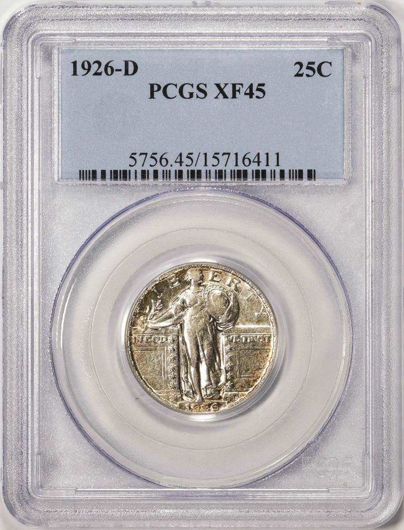 One 1926-D Standing Liberty Quarter Coin PCGS XF45. PCGS Graded.