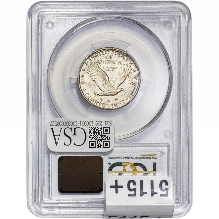 COINS AND CURRENCY LISTED IN GSA’S CATALOG AS GRADED AND ENCAPSULATED BY PCGS, NGC, ANACS, ICG, PCGS CURRENCY, PMG, PCGS BANKNOTE GRADING, CMC OR ANY OTHER THIRD-PARTY GRADING SERVICE ARE LIKEWISE SOLD “AS-IS” EXCEPT AS EXPRESSLY SET FORTH HEREIN. ALL THIRD-PARTY GRADING SERVICE GUARANTEES, INCLUDING AUTHENTICITY, ARE THE SOLE RESPONSIBILITY OF THE THIRD-PARTY GRADING SERVICE AND NOT WARRANTIES OR GUARANTEES OF GSA. BIDDERS SHOULD CONTACT THESE THIRD-PARTY GRADING SERVICES DIRECTLY WITH RESPECT TO ANY CLAIMS OR QUESTIONS THEY MAY HAVE CONCERNING THEIR GUARANTEES AND WARRANTIES. BIDDERS ACKNOWLEDGE AND AGREE THAT AUCTIONEER IS NOT BOUND BY OR LIABLE FOR ANY OPINION OR CERTIFICATION BY ANY THIRD-PARTY GRADING SERVICE. REMOVAL OF A PRODUCT FROM ITS PROTECTIVE CASING OR HOLDER OR ALTERATION OF ANY COIN HOLDER WAIVES ALL RIGHTS CONCERNING THE PRODUCT CONTAINED THEREIN.