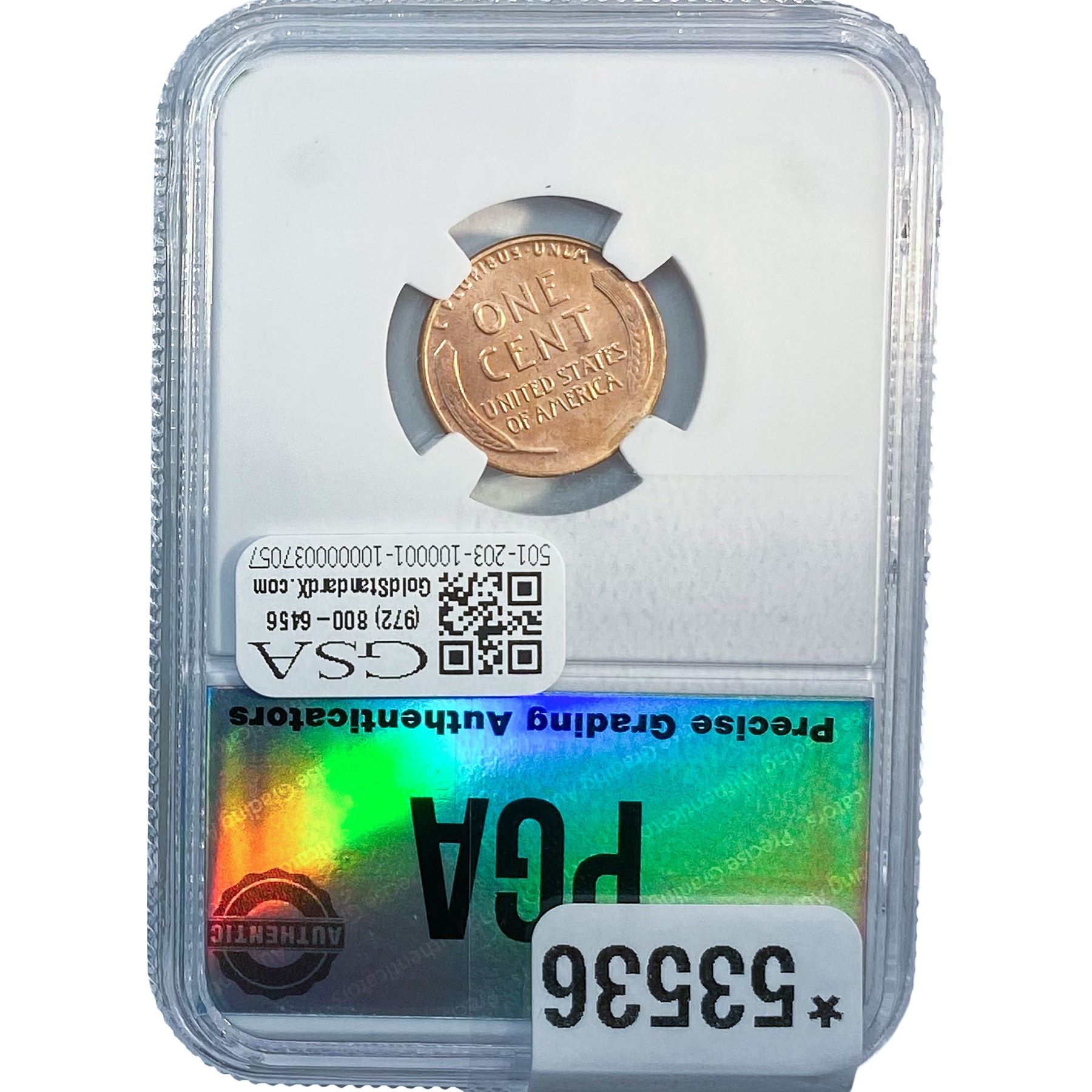 e. Coins sold referencing a third-party grading service are sold “AS IS” without any express or implied warranty, except for a guarantee by GSA that they are genuine. Removal or alteration of the holder, voids all of Bidder’s claims concerning that Product. Certain warranties may be available from the grading services and Bidders are referred to them for further details: Numismatic Guaranty Corporation (NGC), PO Box 4776, Sarasota, FL 34230, www.ngccoin.com/services/writtenguarantee.asp; Professional Coin Grading Services (PCGS), PO Box 9458, Newport Beach, CA 92658, www.pcgs.com/guarantee.html; ANACS, 6555 S. Kenton St., Ste. 303, Englewood, CO 80111; and Independent Coin Grading Co. (ICG), 7901 East Bellview, Ave., Suite 50, Englewood, CO 80111.
