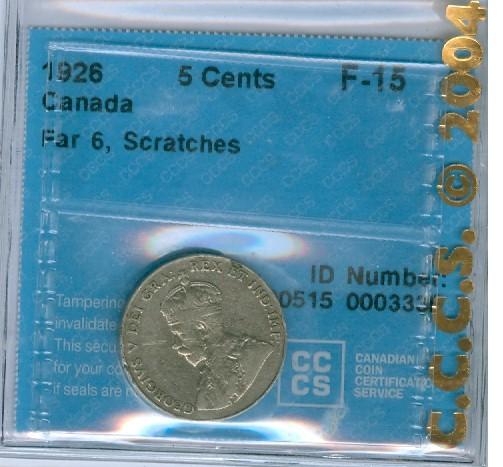 1926 Far 6 5¢ CCCS F-15 Scratches