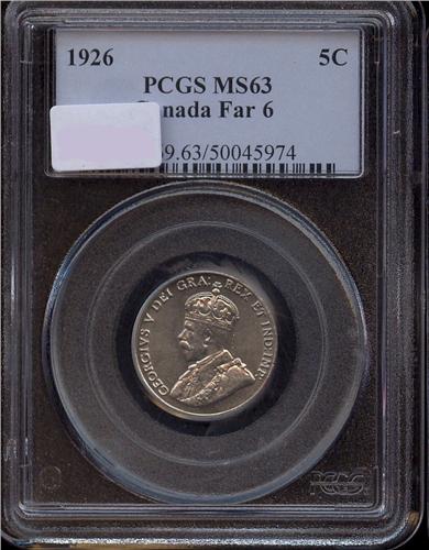 1926 Far 6 PCGS MS63 Well struck with eight beads showing. Full lustre. A very rare coin!