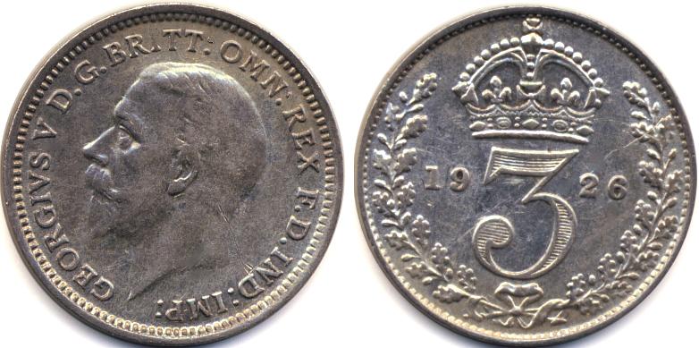 1926 GREAT BRITIAN SILVER 3 PENCE MODIFIED HEAD LEFT
