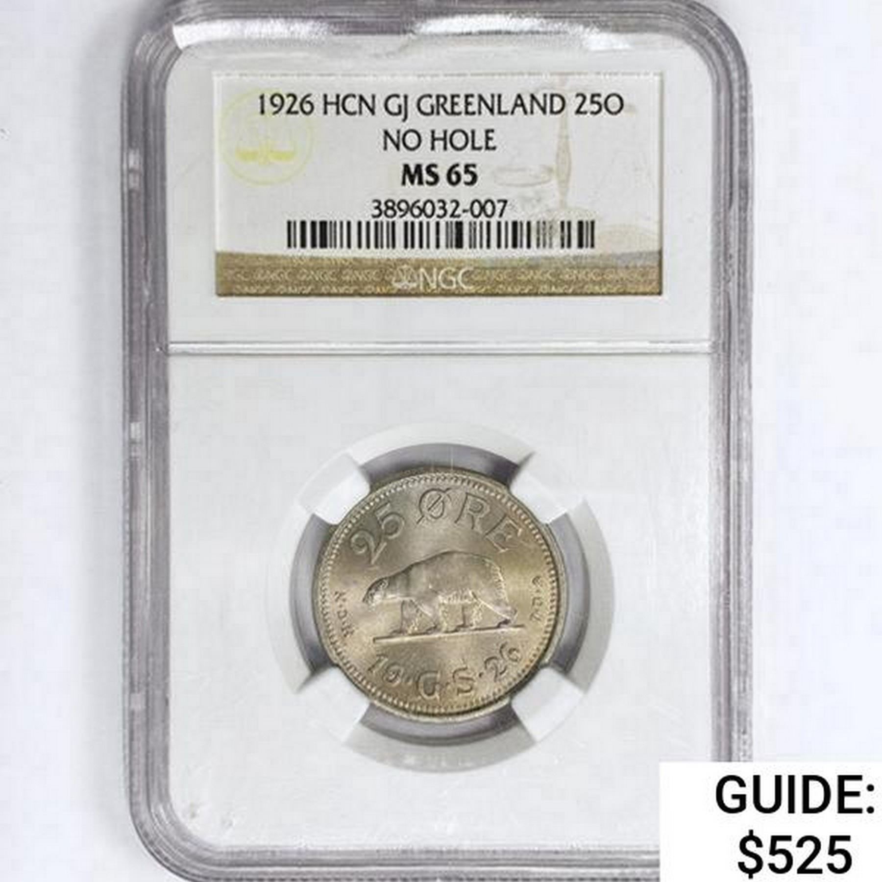 1926 HCN GJ 25O Greenland NGC MS65 No Hole