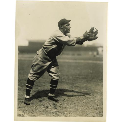 <B>1926 Hack Wilson Wire Photograph, Type 1.</B></I> Single-year uniform style allows us to date this image definitively to the 1926 season, one that found the stocky slugger atop the leader board for National League home runs and walks. Here the Hall of Fame outfielder shows his skills with the leather in one of the finest portraits we've seen of this five-foot six, one hundred ninety pound marvel. "International News Photos" stamping on verso. Confirmed as "Type 1" by PSA/DNA.