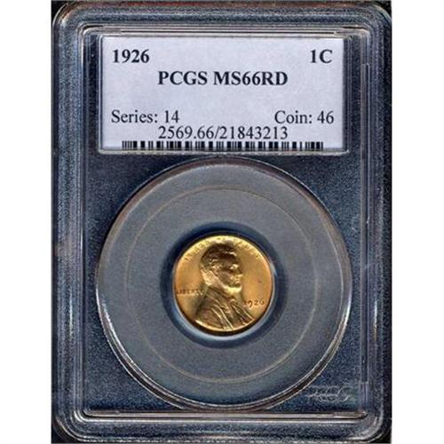 <b>1926 Lincoln Cent. PCGS graded MS66 R.</b> A lustrous example that has dazzling coppery-gold color. Meticulous strike on every device, including portrait, coat, and wheat ears <b>(PCGS # 2569)</b>
