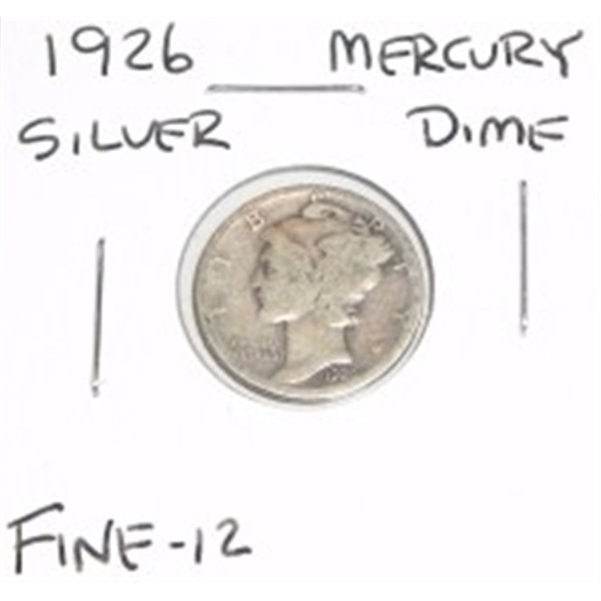 1926 Mercury Silver Dime *FINE-12 GRADE*!! ***Coin & Currency Grades, Conditions & Values are not Safe Deposit Coins Responsibilty. Grades, Conditions & Values are determined by Consigner(s) & Buyers***