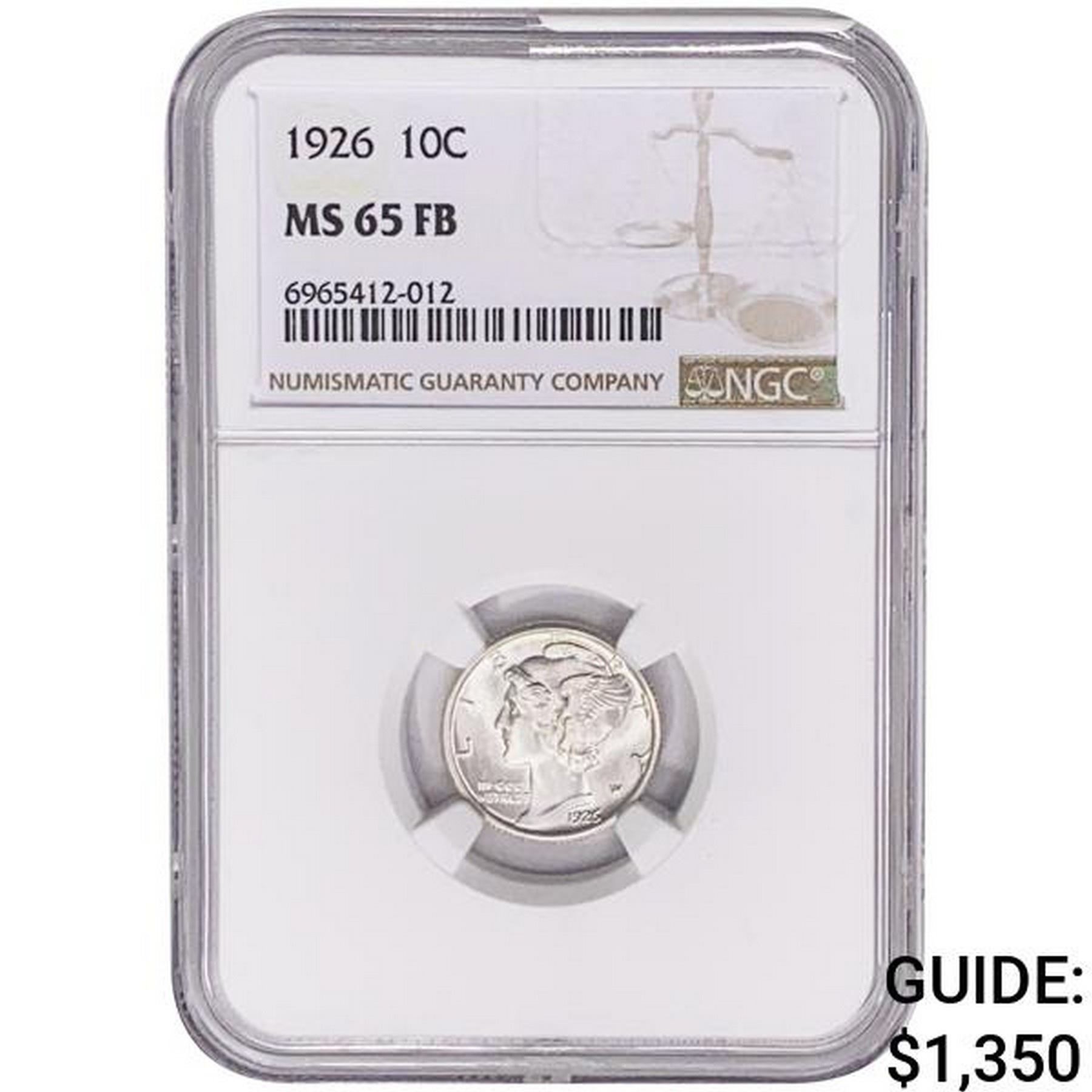 1926 Mercury Silver Dime NGC MS65 FB