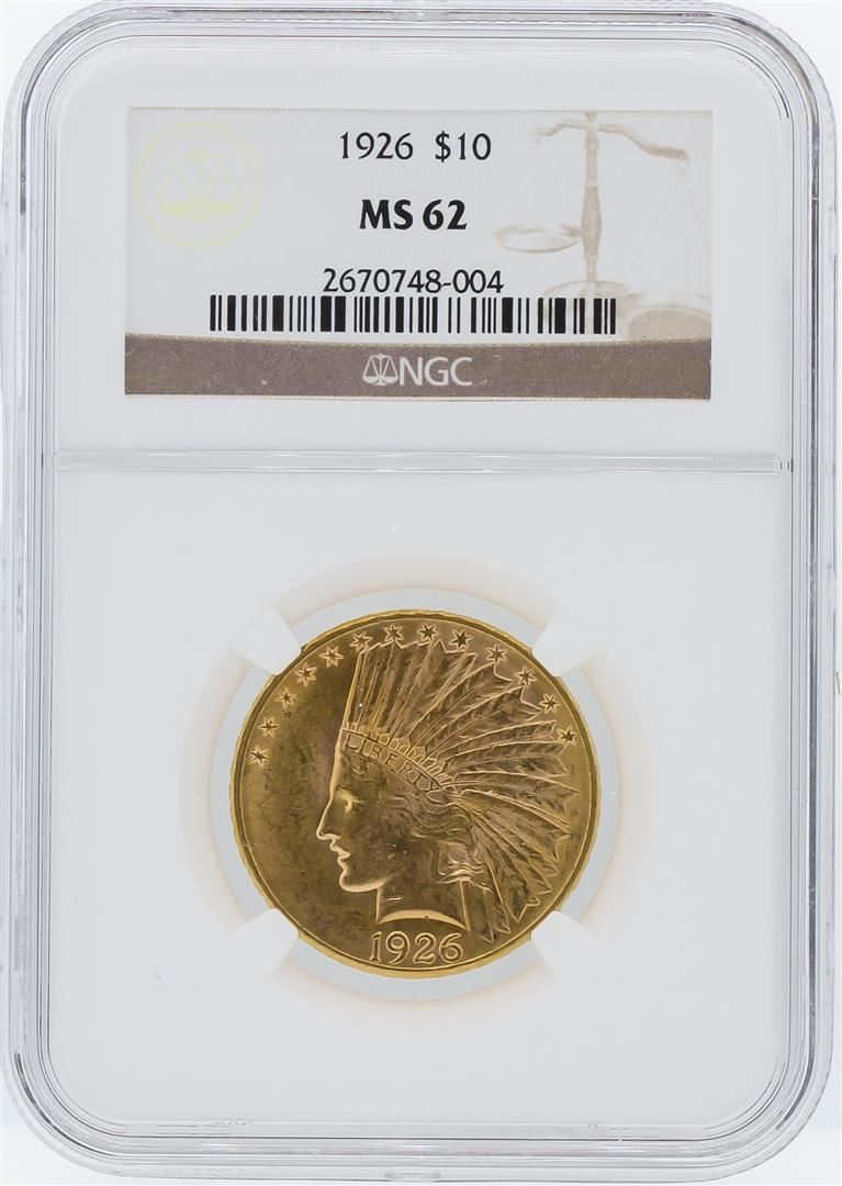 One 1926 NGC MS62 $10 Indian Head Eagle Gold Coin. NGC Certified.
