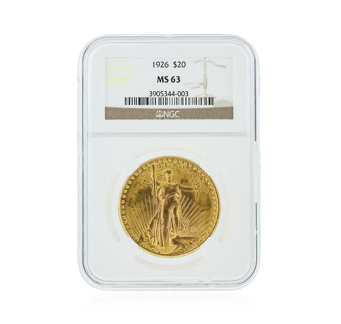 One 1926 NGC MS63 $20 St. Gaudens Double Eagle Gold Coin. NGC Certified.
