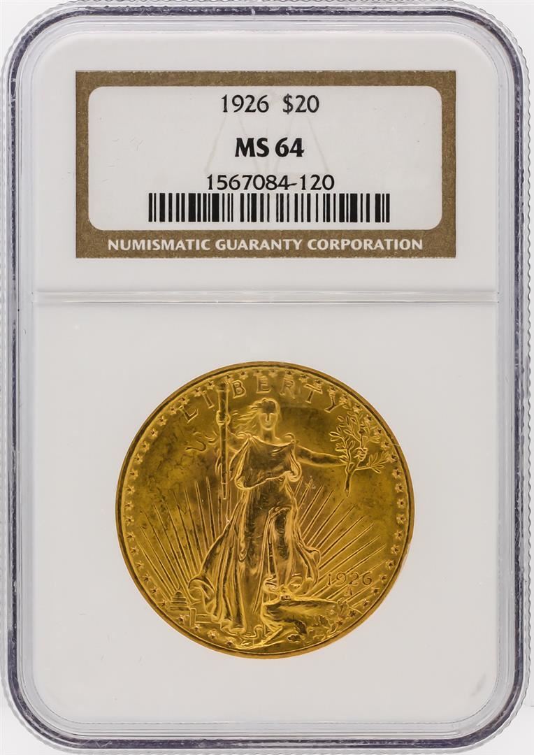 One 1926 NGC MS64 $20 St. Gaudens Double Eagle Gold Coin. NGC Certified.