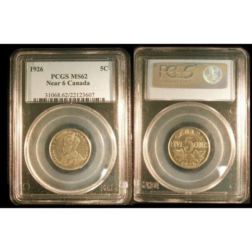 1926 Near 6 5¢ PCGS MS-62 cross ICCS MS-62,