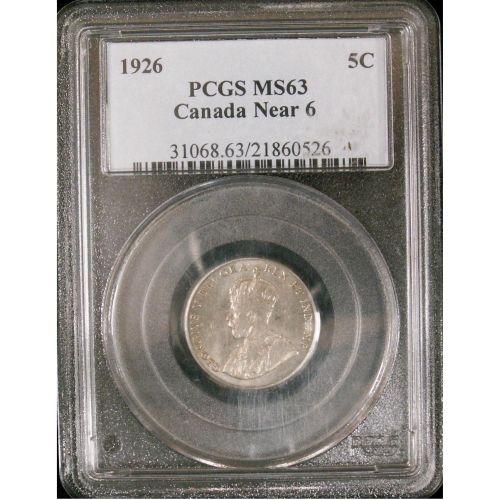 1926 Near 6 5¢ PCGS MS-63, typical strike with good lustre. A nice example