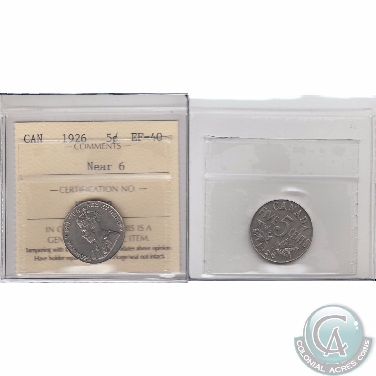 1926 Near 6 Canada 5-cent ICCS Certified EF-40