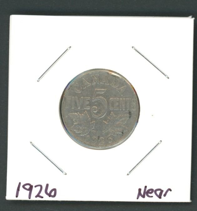 1926 Near Canadian Nickle 5 Cent Coin
