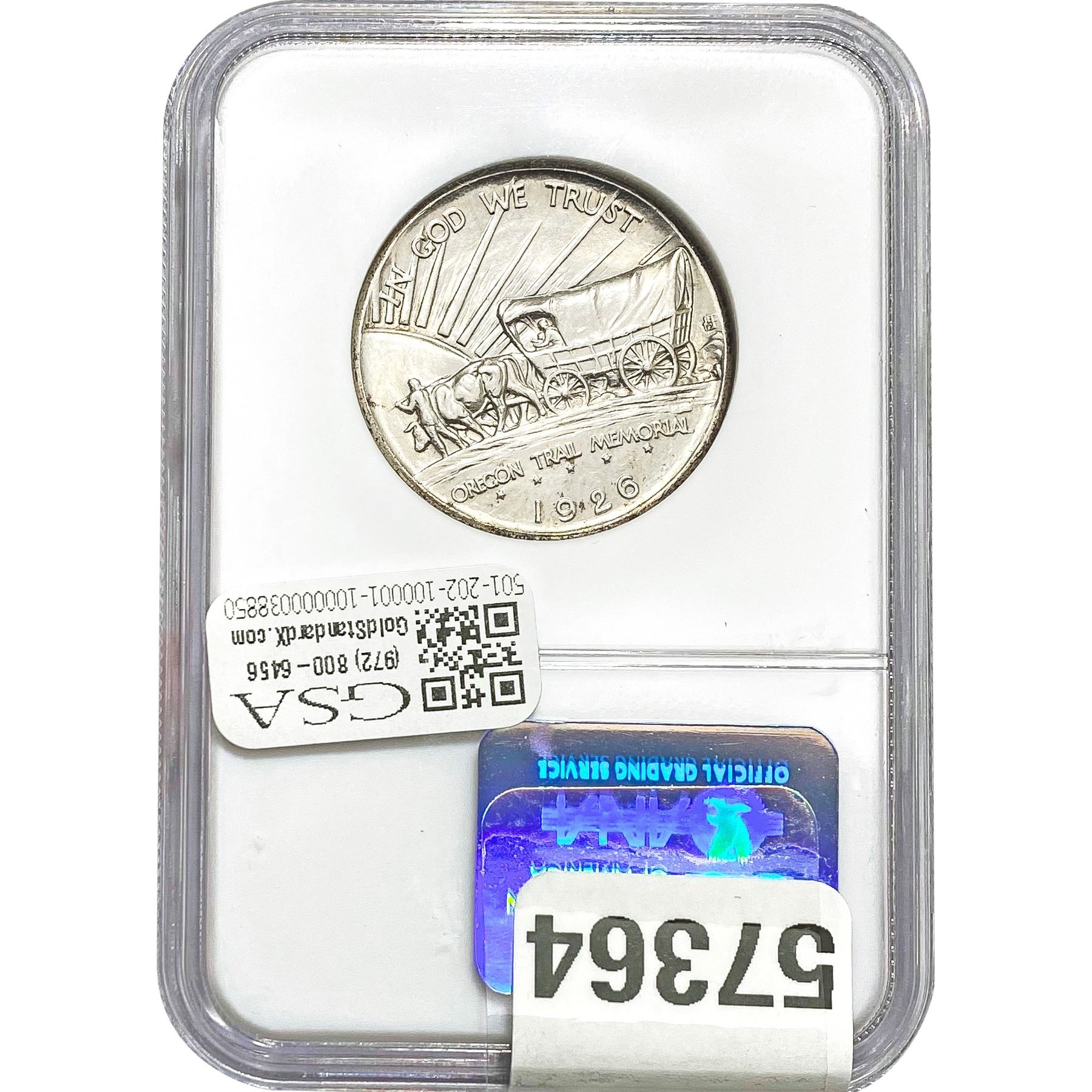 e. Coins sold referencing a third-party grading service are sold “AS IS” without any express or implied warranty, except for a guarantee by GSA that they are genuine. Removal or alteration of the holder, voids all of Bidder’s claims concerning that Product. Certain warranties may be available from the grading services and Bidders are referred to them for further details: Numismatic Guaranty Corporation (NGC), PO Box 4776, Sarasota, FL 34230, www.ngccoin.com/services/writtenguarantee.asp; Professional Coin Grading Services (PCGS), PO Box 9458, Newport Beach, CA 92658, www.pcgs.com/guarantee.html; ANACS, 6555 S. Kenton St., Ste. 303, Englewood, CO 80111; and Independent Coin Grading Co. (ICG), 7901 East Bellview, Ave., Suite 50, Englewood, CO 80111.