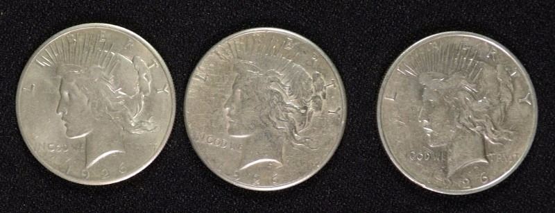 1926-P,D,S PEACE DOLLARS AU+