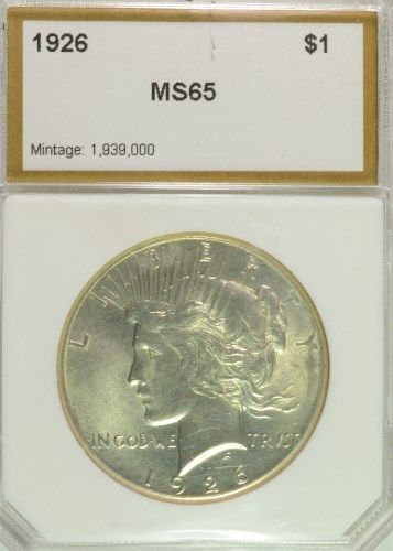 1926 PEACE SILVER DOLLAR, PCI MS-65, NICE COIN