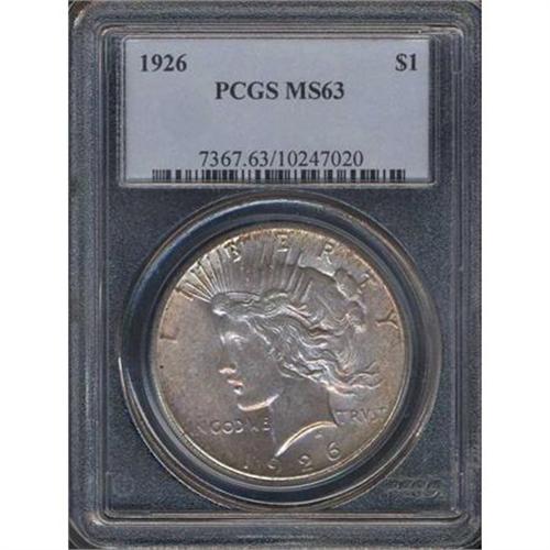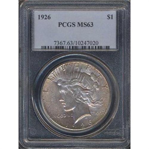<b>1926 Peace Dollar. PCGS graded MS63.</b> A lustrous choice specimen that has satin luster and rich golden-gray color <b>(PCGS # 7367)</b> <i>