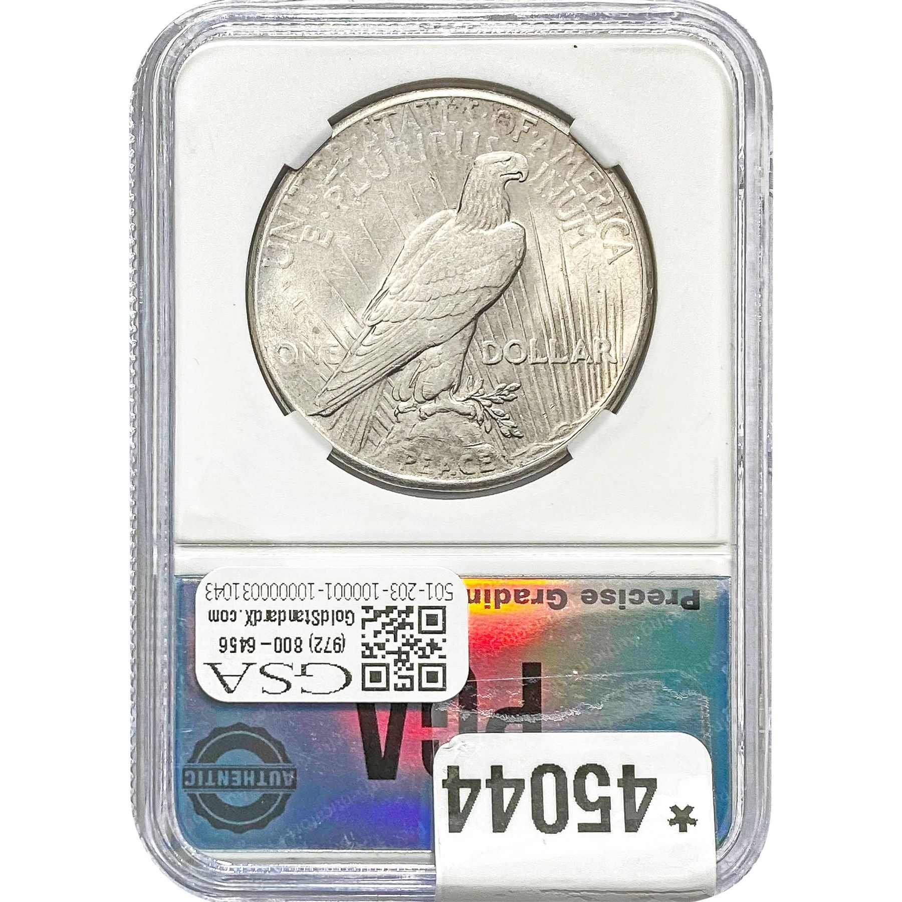 COINS AND CURRENCY LISTED IN GSA’S CATALOG AS GRADED AND ENCAPSULATED BY PCGS, NGC, ANACS, ICG, PCGS CURRENCY, PMG, PCGS BANKNOTE GRADING, CMC OR ANY OTHER THIRD-PARTY GRADING SERVICE ARE LIKEWISE SOLD “AS-IS” EXCEPT AS EXPRESSLY SET FORTH HEREIN. ALL THIRD-PARTY GRADING SERVICE GUARANTEES, INCLUDING AUTHENTICITY, ARE THE SOLE RESPONSIBILITY OF THE THIRD-PARTY GRADING SERVICE AND NOT WARRANTIES OR GUARANTEES OF GSA. BIDDERS SHOULD CONTACT THESE THIRD-PARTY GRADING SERVICES DIRECTLY WITH RESPECT TO ANY CLAIMS OR QUESTIONS THEY MAY HAVE CONCERNING THEIR GUARANTEES AND WARRANTIES. BIDDERS ACKNOWLEDGE AND AGREE THAT AUCTIONEER IS NOT BOUND BY OR LIABLE FOR ANY OPINION OR CERTIFICATION BY ANY THIRD-PARTY GRADING SERVICE. REMOVAL OF A PRODUCT FROM ITS PROTECTIVE CASING OR HOLDER OR ALTERATION OF ANY COIN HOLDER WAIVES ALL RIGHTS CONCERNING THE PRODUCT CONTAINED THEREIN.