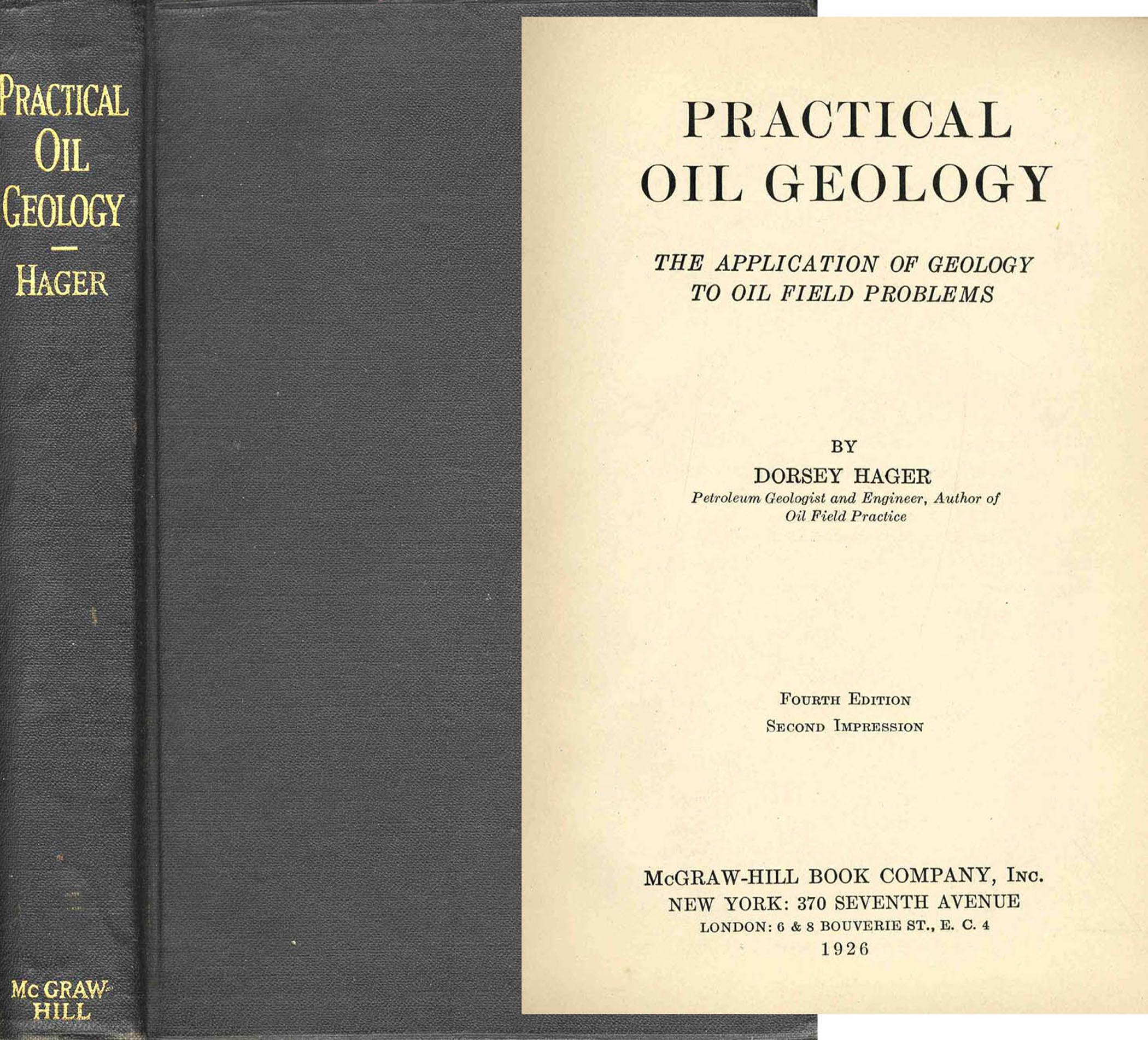 ''Practical Oil Geology: The Application of Geology to Oil Field Problems'' by petroleum geologist and engineer, Dorsey Hager. New York: McGraw-Hill Book Company: 1926. Fourth edition. Contents include: ''Locating Drill-Hole Sites,'' ''Water, the Enemy of the Petroleum Industry'' and ''What the Geologist Has Done for the Oil Business.'' Book, measuring 5.25'' x 7'', runs 295pp. Mild wear to black cloth boards and previous owner's signature to front free endpaper. Some toning and damp staining throughout, otherwise very good.