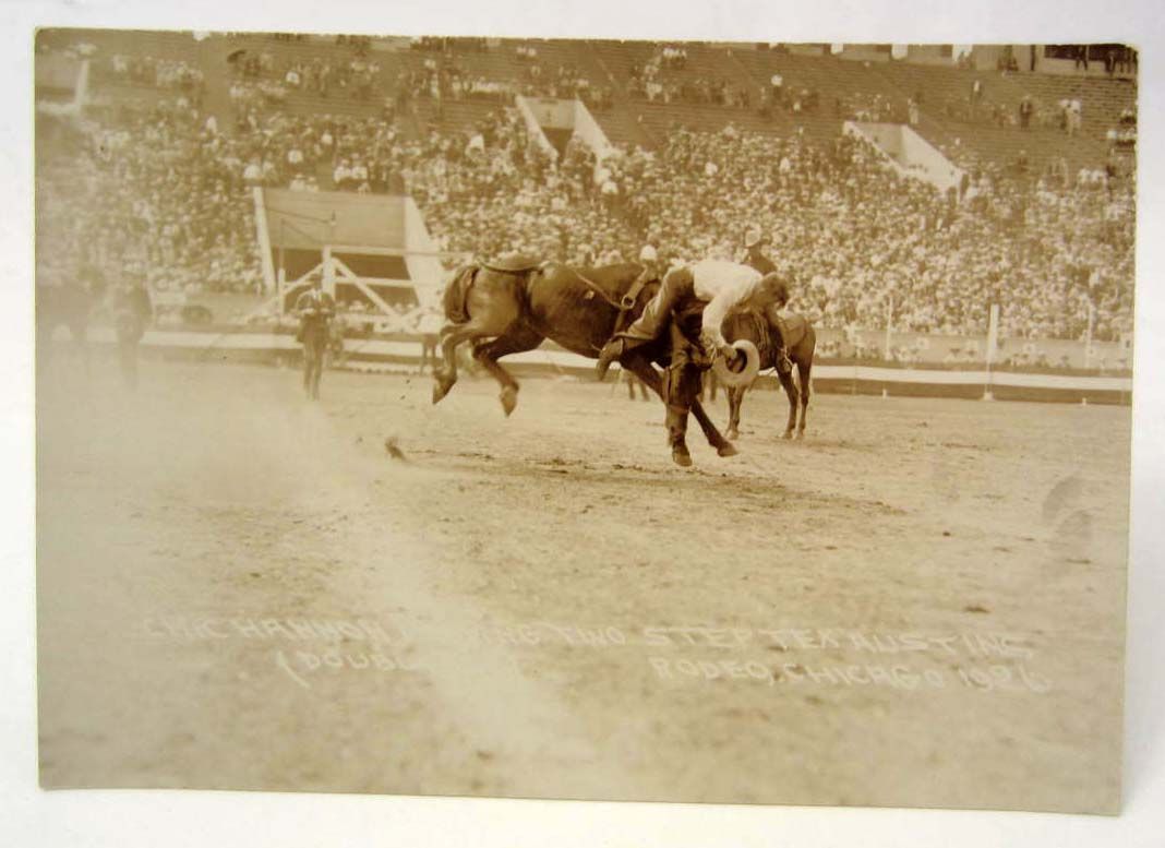 1926 RPPC REAL PHOTO POSTCARD OF CHICK HANNON RIDING 2 STEP TEX