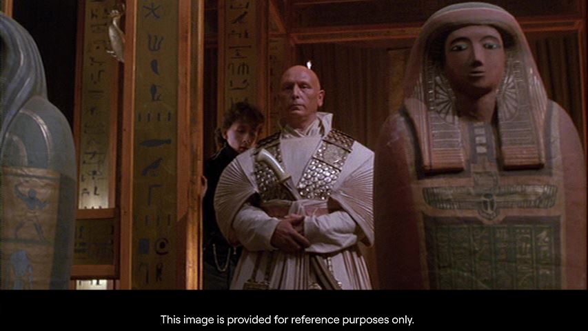 YOUNG SHERLOCK HOLMES (1985) - Rame-Tep Khopesh - A Rame-Tep khopesh from Barry Levinson's Young Sherlock Holmes. Sherlock Holmes (Nicholas Rowe) and John Watson (Alan Cox) rescued Elizabeth Hardy (Sophie Ward) from a cult of khopesh-wielding Osiris worshippers known as Rame-Tep and led by Holmes' mortal nemesis Moriarty (Anthony Higgins), aka Professor Rathe and Eh-Tar.