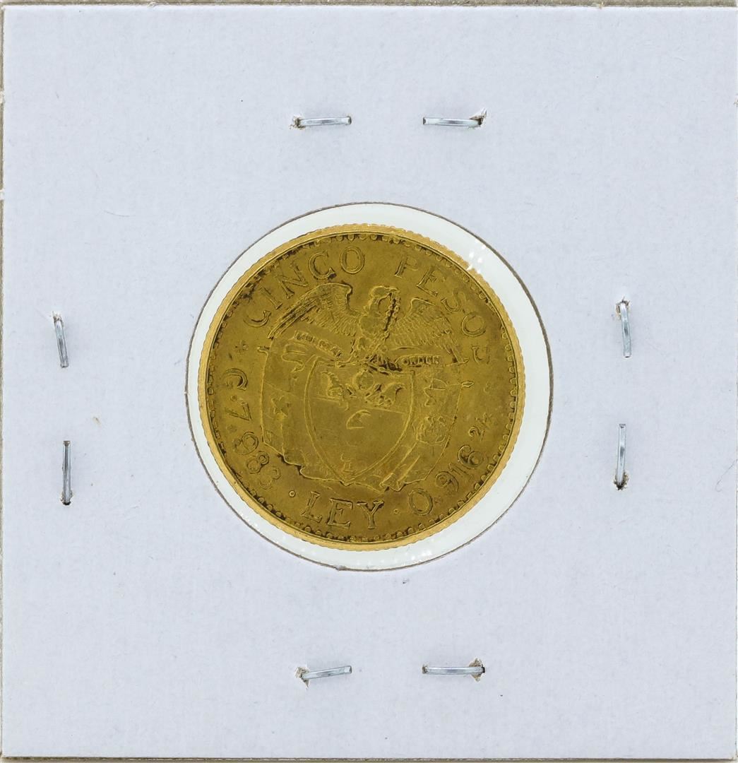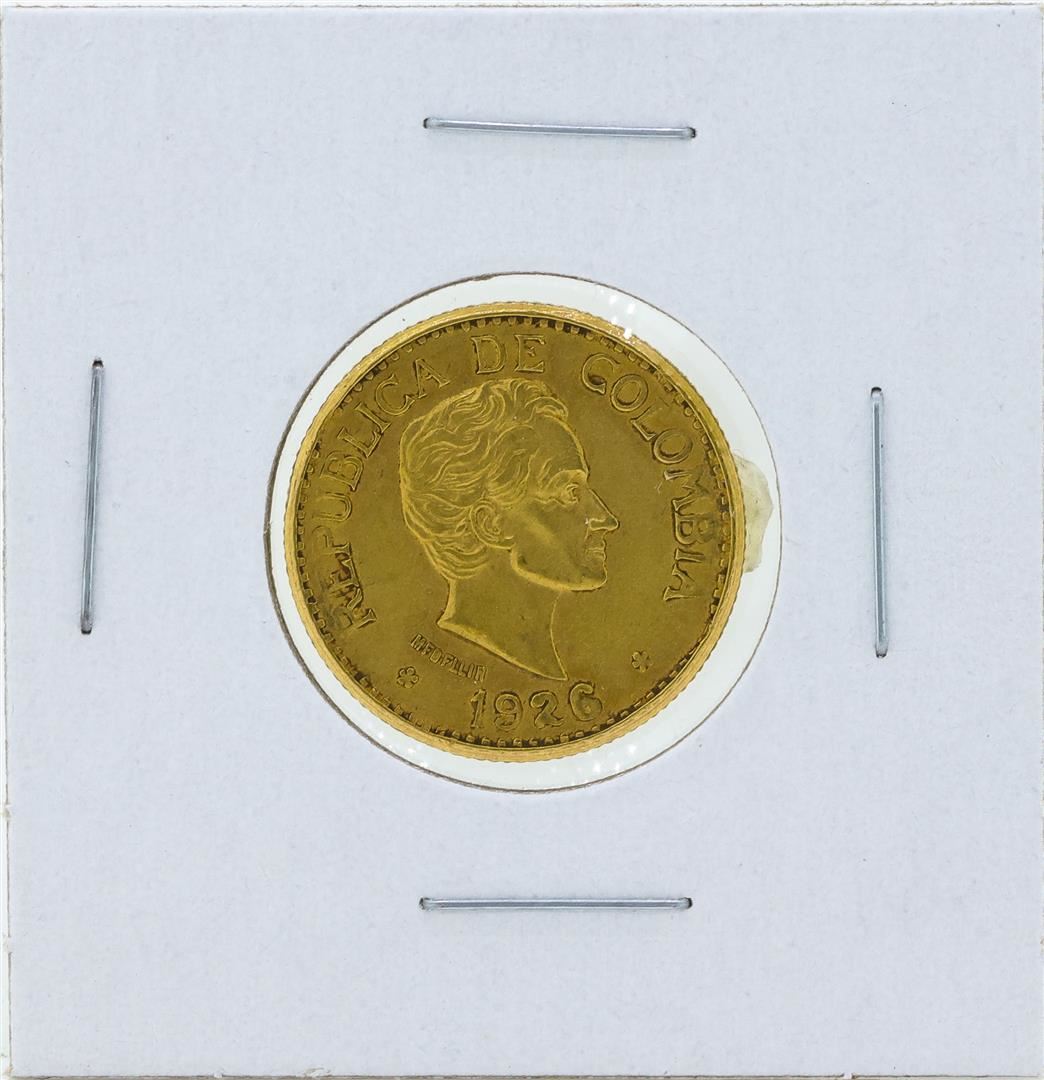 One 1926 Republic of Columbia 5 Pesos Gold Coin.