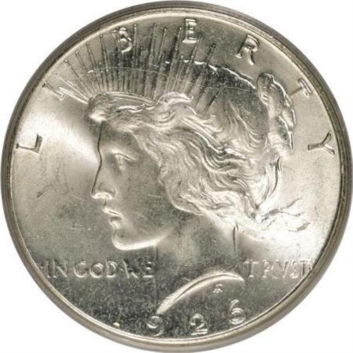 <B>1926-S $1 MS64 PCGS.</B></I> PCGS Population (1537/536). NGC Census: (1409/369). Mintage: 6,980,000. Numismedia Wsl. Price for NGC/PCGS coin in MS64: $220. (#7369)<BR><BR><B>Coin Engraver:</B> Anthony de Francisci<BR><BR><b>Shipping:</b> Coins & Currency (<a target="_blank" href="http://www.heritageauctions.com/common/shipping.php">view shipping information</a>)