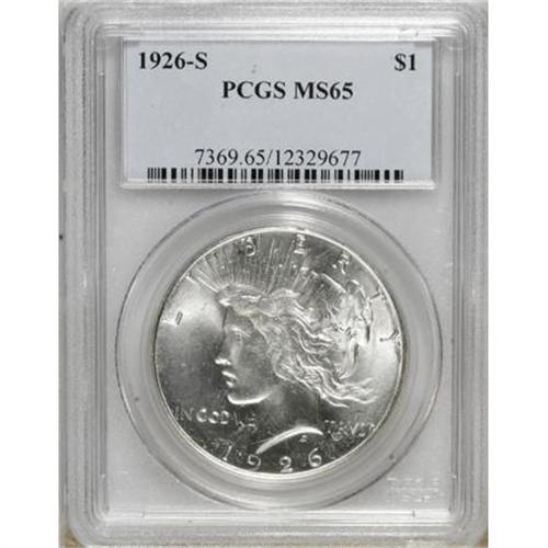 <B>1926-S $1 MS65 PCGS.</B></I> This fully brilliant Gem exhibits dazzling luster and is uncommonly free from the minute marks that even high grade Peace dollars generally possess.<BR><BR><B>Coin Engraver:</B> Anthony de Francisci<BR><BR><b>Shipping:</b> Coins & Currency (<a target="_blank" href="http://www.heritageauctions.com/common/shipping.php">view shipping information</a>)