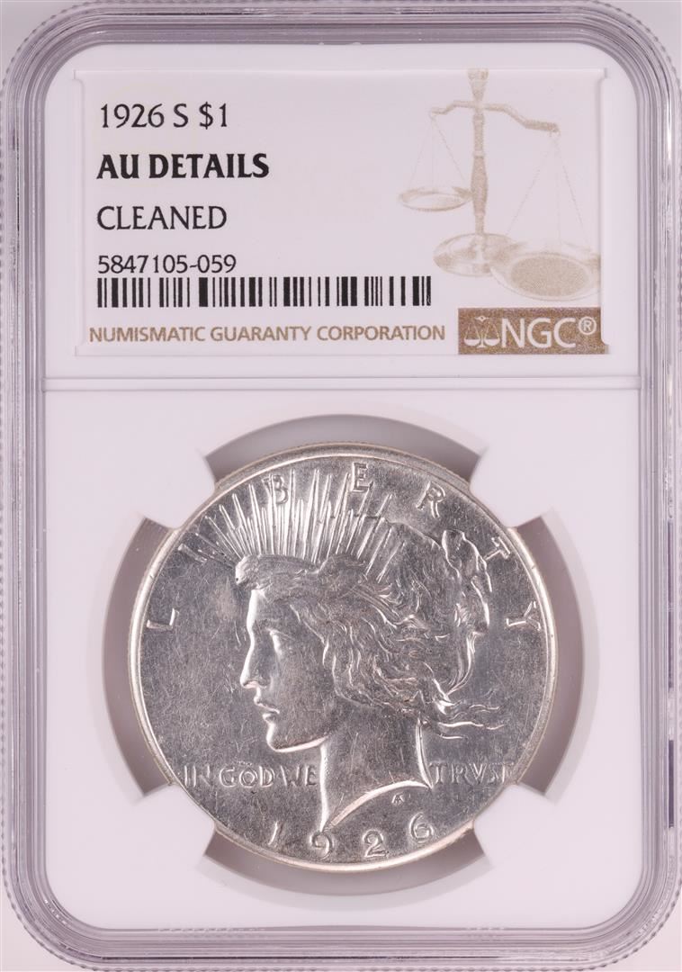 One 1926-S $1 Peace Silver Dollar Coin NGC Unc Details. NGC Certified.