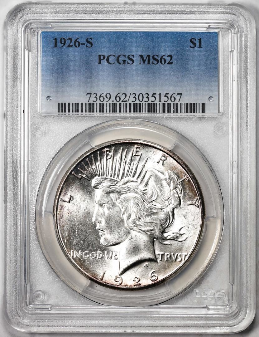 One 1926-S $1 Peace Silver Dollar Coin PCGS MS62. PCGS Graded.
