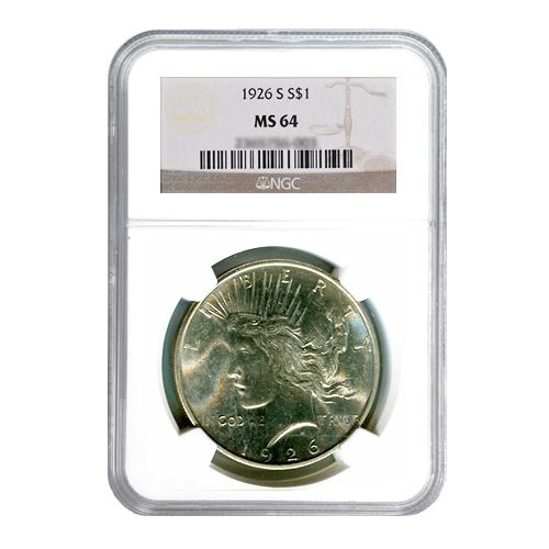 1926-S $1 Peace Silver Dollar - NGC MS64