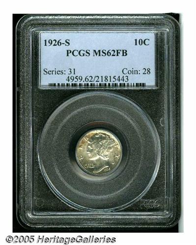 <B>1926-S<10C> MS62 Full Bands PCGS.</B></I> An affordable example of this scarce Full Bands dime. Mostly brilliant, there is scattered golden toning around the peripheries.