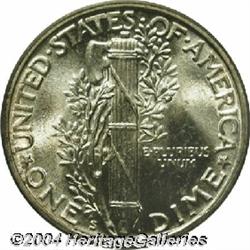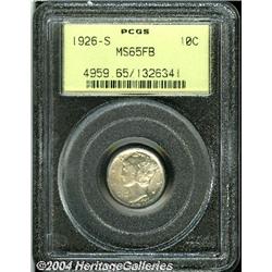 <B>1926-S<10C> MS65 Full Bands PCGS.</B></I> The low mintage 1926-S is worthy of its reputation as a semi-key in top grades, for the small quantity of Uncirculated survivors seldom exceeds MS63 quality and often lacks full bands definition. This noteworthy Gem exhibits creamy luster and is bathed in delicate opaque-rose patina on the obverse. A thin die crack through the obverse portrait only adds visual interest. Population: 20 in 65, 14 finer (9/04). <BR><BR><B>Important notice:</B> Heritage usually auctions material at the rate of 200-250 lots per hour. On some occasions eBay Live bid software or the Internet may not be able to keep up with the pace of the auction. We recommend placing a realistic absentee bid now as insurance to avoid disappointment. Occasionally the auctioneer may eliminate or reject an eBay Live bid, and the auctioneer may also reopen a lot after the close of the eBay live bidding (usually because we missed an audience bid), and may reject your bid even if it shows you as the winning bidder. By bidding via eBay Live, you agree that Heritage may award the lot to another bidder at its sole discretion under the circumstances described above or any other reasonable circumstances. Since eBay bids are not shown to us until we open the lot on the floor, we treat those bids just like floor bids. In most cases the floor responds before the eBay bid is presented to us, due to Internet lag time, so for consistency we have made it a policy that floor bids are always considered first over tie eBay live bids. Also please note that all Heritage lots purchased through eBay Live carry a 20% Buyer's Premium. Please make sure you read the Terms and Conditions before you bid.