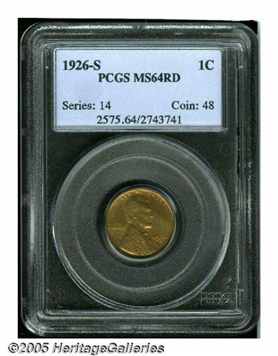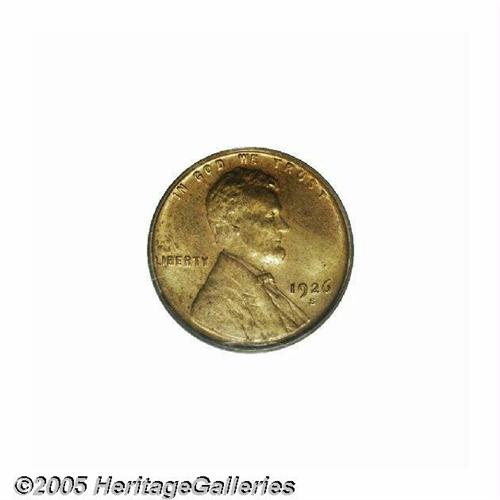 <B>1926-S<1C> MS64 Red PCGS.</B></I> The mintage of 4.5 million pieces is only a partial indicator of the rarity of this issue. It is very scarce with full red color and high grade examples are seldom seen. This piece has even, although slightly mellowed, original color. Close examination reveals a few tiny abrasions and carbon spots, but these factors hardly detract. Population: 62 in 64, 1 finer (6/05).<BR><I>From The William Bickel Collection, Part One.</B></I>