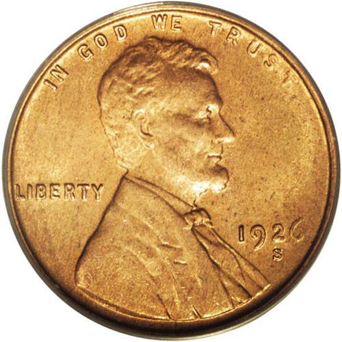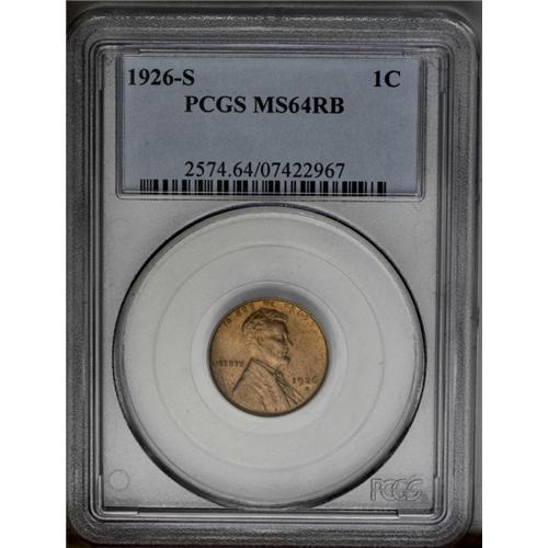 <B>1926-S<1C> MS64 Red and Brown PCGS.</B></I> The rarity of the 1926-S in full Red compels most collectors to select a nearly Red substitute. The present piece serves that purpose nicely. The smooth straw-gold surfaces glimmer with luster, and carbon is limited to a few pinpoint flecks near the date. The strike is good, despite a hint of bluntness on the shoulder and the O in ONE.