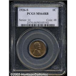 1926-S 1C MS64 Red and Brown PCGS. Olive and lilac hues intermingle throughout this shimmering and nicely struck near-Gem. A conditionally elusive low mintage S-mint issue. Important notice: Heritage usually auctions material at the rate of 200-250 lots per hour. On some occasions eBay Live bid software or the Internet may not be able to keep up with the pace of the auction. We recommend placing a realistic absentee bid now as insurance to avoid disappointment. Occasionally the auctioneer may eliminate or reject an eBay Live bid, and the auctioneer may also reopen a lot after the close of the eBay live bidding (usually because we missed an audience bid), and may reject your bid even if it shows you as the winning bidder. By bidding via eBay Live, you agree that Heritage may award the lot to another bidder at its sole discretion under the circumstances described above or any other reasonable circumstances. Also please note that all Heritage lots purchased through eBay Live carry a 20% Buyer's Premium. Please make sure you read the Terms and Conditions before you bid.