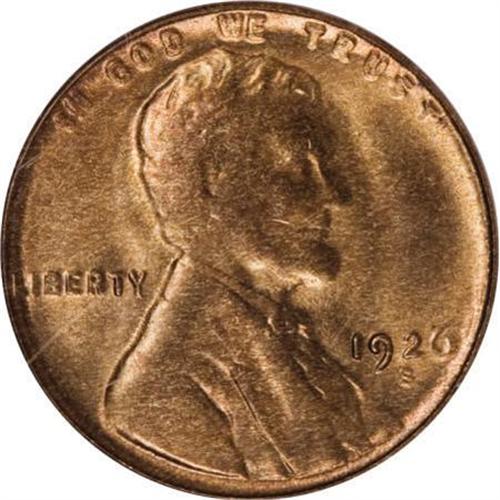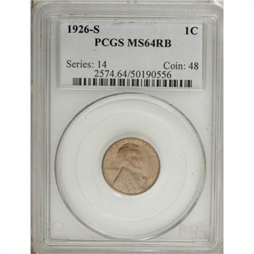 <B>1926-S 1C MS64 Red and Brown PCGS.</B></I> The 1926-S is an issue that in the higher Mint State grades seems to be showing more and more strength as time goes by and generations of Lincoln cent collectors show unflagging interest. There is only a single Gem Red certified at PCGS. Near-Gem Red coins are becoming increasingly out of reach for many collectors, leaving the seldom-seen MS65 Red and Brown and MS64 Red and Brown pieces at the top of the scale of available examples. <BR> This coin shows remarkably few poststrike impairments, but it is struck from a severely fatigued obverse die and a reverse die that shows fewer signs of erosion. The 6 and mintmark show notable weakness, with metal flowlines obvious behind the president's bust. Much of the fine detail is effaced on the upper hair, the ear, and the beard. The AM in AMERICA on the reverse are beginning to disappear, the most obvious sign of die fatigue on that side. On the positive side, there is no evidence of carbon, significant contact, or other poststrike impairment. While it is a debatable point, the coin appears high-end in terms of technical merit, and without the advanced die erosion would almost certainly have garnered a Gem grade. <BR><BR><B>Coin Engraver:</B> Victor D. Brenner<BR><BR><b>Shipping:</b> Coins & Currency (<a target="_blank" href="http://www.heritageauctions.com/common/shipping.php">view shipping information</a>)