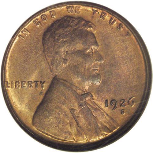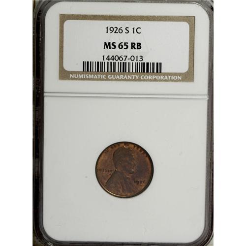 <B>1926-S 1C MS65 Red and Brown NGC.</B></I> Reasonably well struck with liberal amounts of sunset-orange color in the recessed areas. Only a few minuscule traces of carbon are noted on the obverse. Quite scarce as a Gem, regardless of the color designation. Census: 27 in 65, 2 finer (12/06).<BR><BR><b>Shipping:</b> Coin/Currency (<a target="_blank" href="http://www.heritageauctions.com/common/shipping.php">view shipping information</a>)