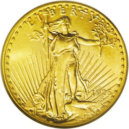 <B>1926-S<$20> MS62 PCGS.</B></I> The highly lustrous, two-toned surfaces sport honey-gold centers that meld into apricot-gold at the rims on each side. Some die crumbling is noted on the reverse rim from noon to 1:30, along with an accompanying light strike in that area, but the eye appeal is extremely high for the grade on this beautiful coin.