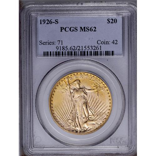 1926-S $20 MS62 PCGS. The highly lustrous, two-toned s