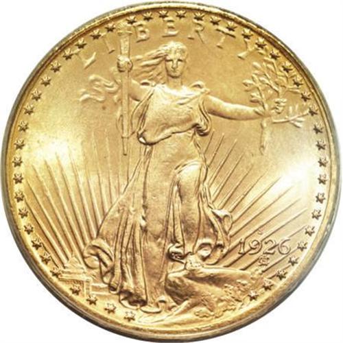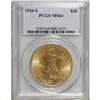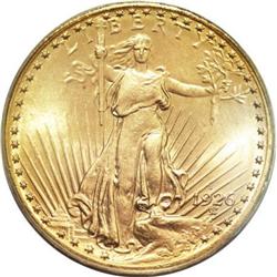 <B>1926-S $20 MS64 PCGS.</B></I> A well struck and untampered example of this scarcer Saint-Gaudens issue. The surfaces are lustrous and show apricot centers with lime-green accents around the margins. Interesting clash marks are present beneath the eagle, but actual abrasions are few, and limited mostly to Liberty's forehead.<BR><BR><B>Coin Engraver:</B> Augustus Saint-Gaudens<BR><BR><b>Shipping:</b> Coins & Currency (<a target="_blank" href="http://www.heritageauctions.com/common/shipping.php">view shipping information</a>)