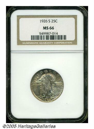 1926-S 25C MS66 NGC. Both sides of this satiny, w