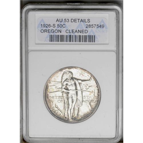 1926-S 50C Oregon--Cleaned--ANACS, AU53 Details, gloss 1926-S[50C] Oregon--Cleaned--ANACS, AU53 Deta